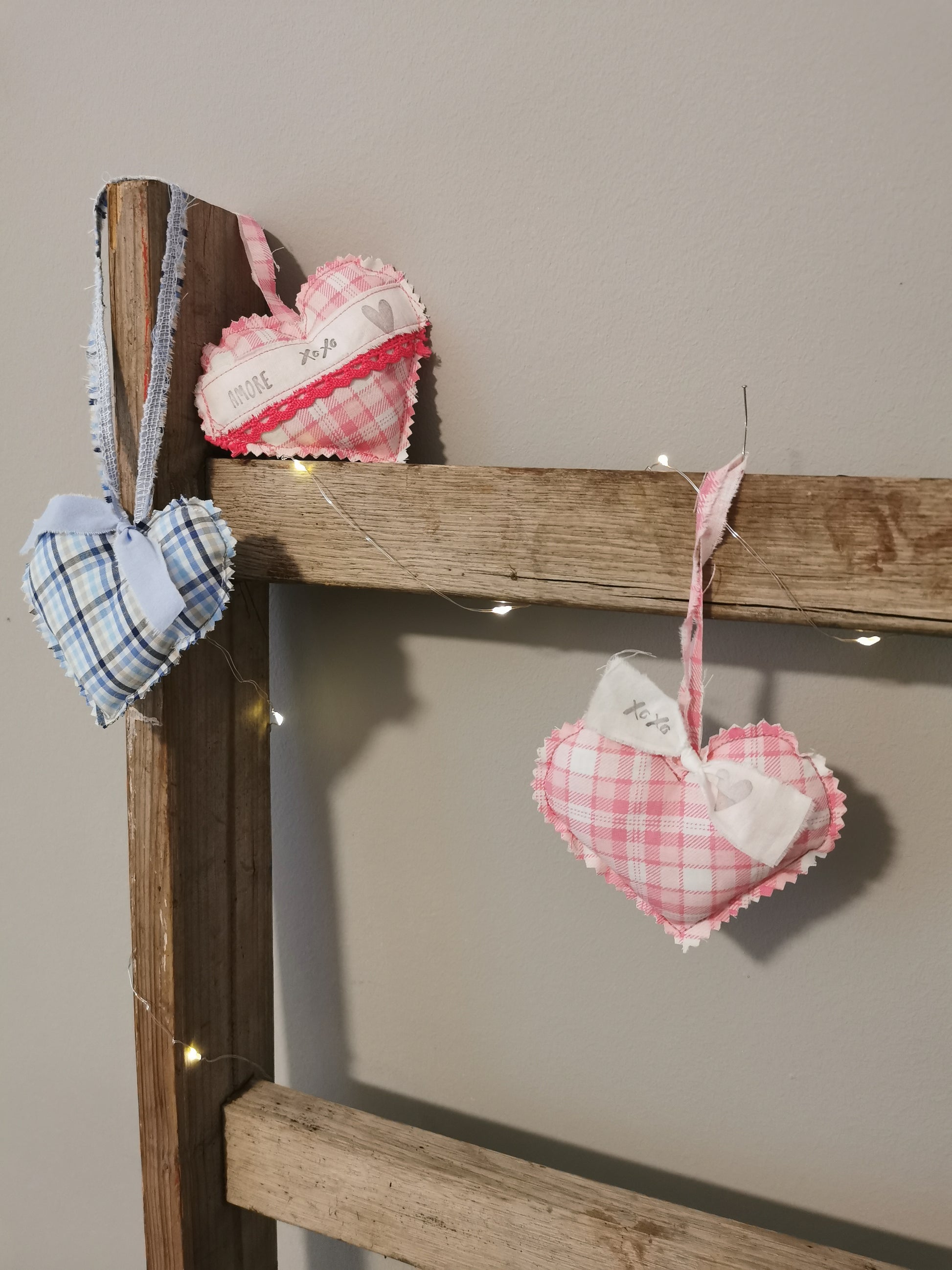 Handgefertigte Herz-Anhänger in verschiedenen Farben und Stoffarten. Liebevoll hergestellt im südhessischen Ried.