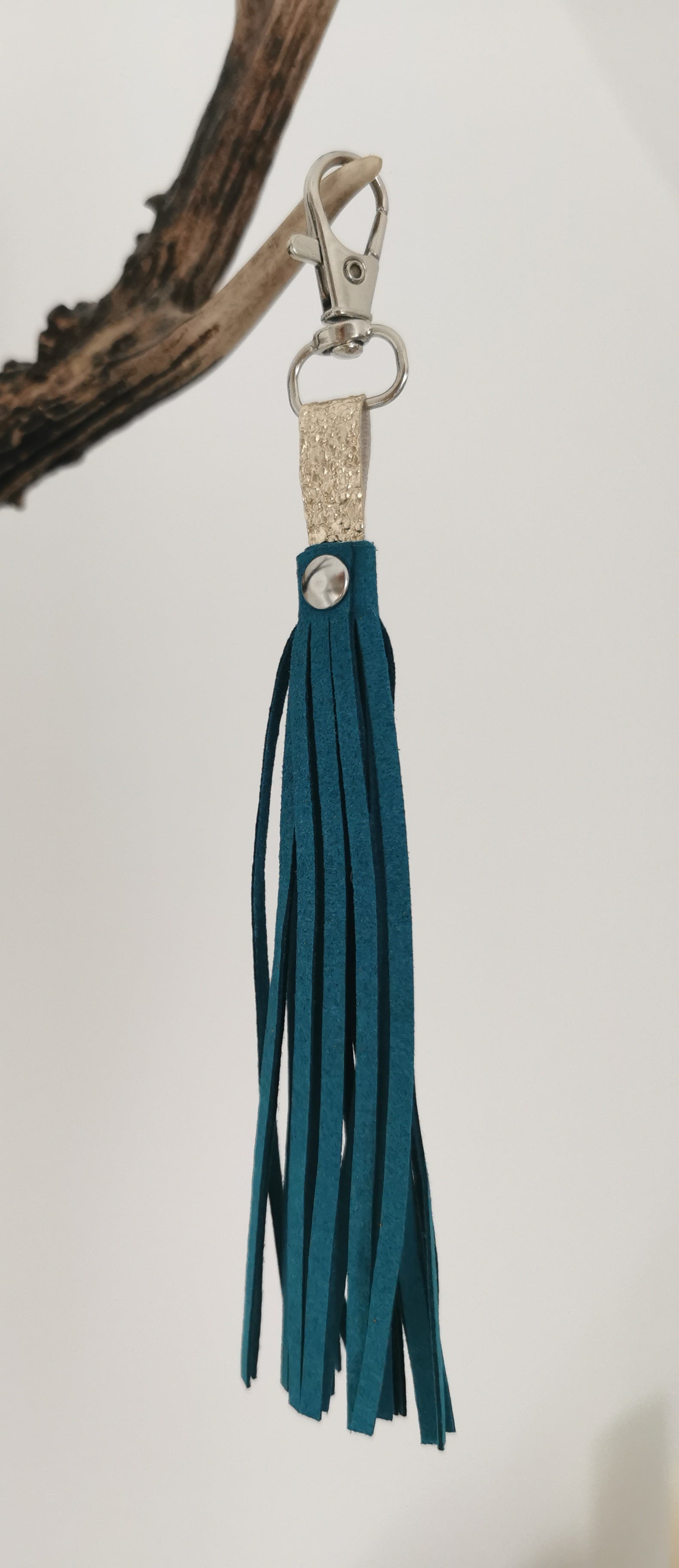 Die Lederquaste in Wildlederoptik lässt sich hervorragend als Schlüsselanhänger, tolles Accessoire für die Handtasche oder sogar für den Rückspiegel im Auto verwenden.