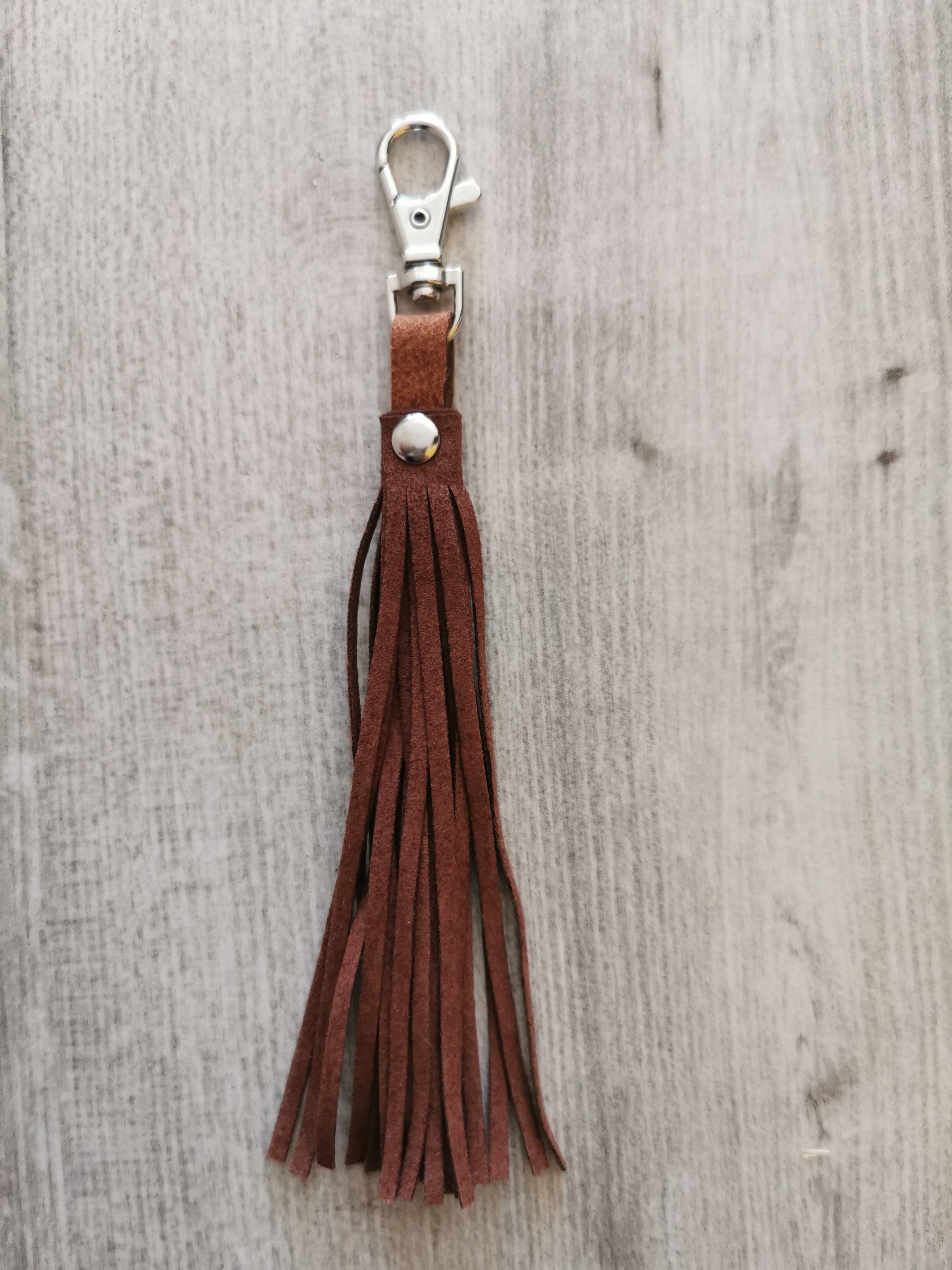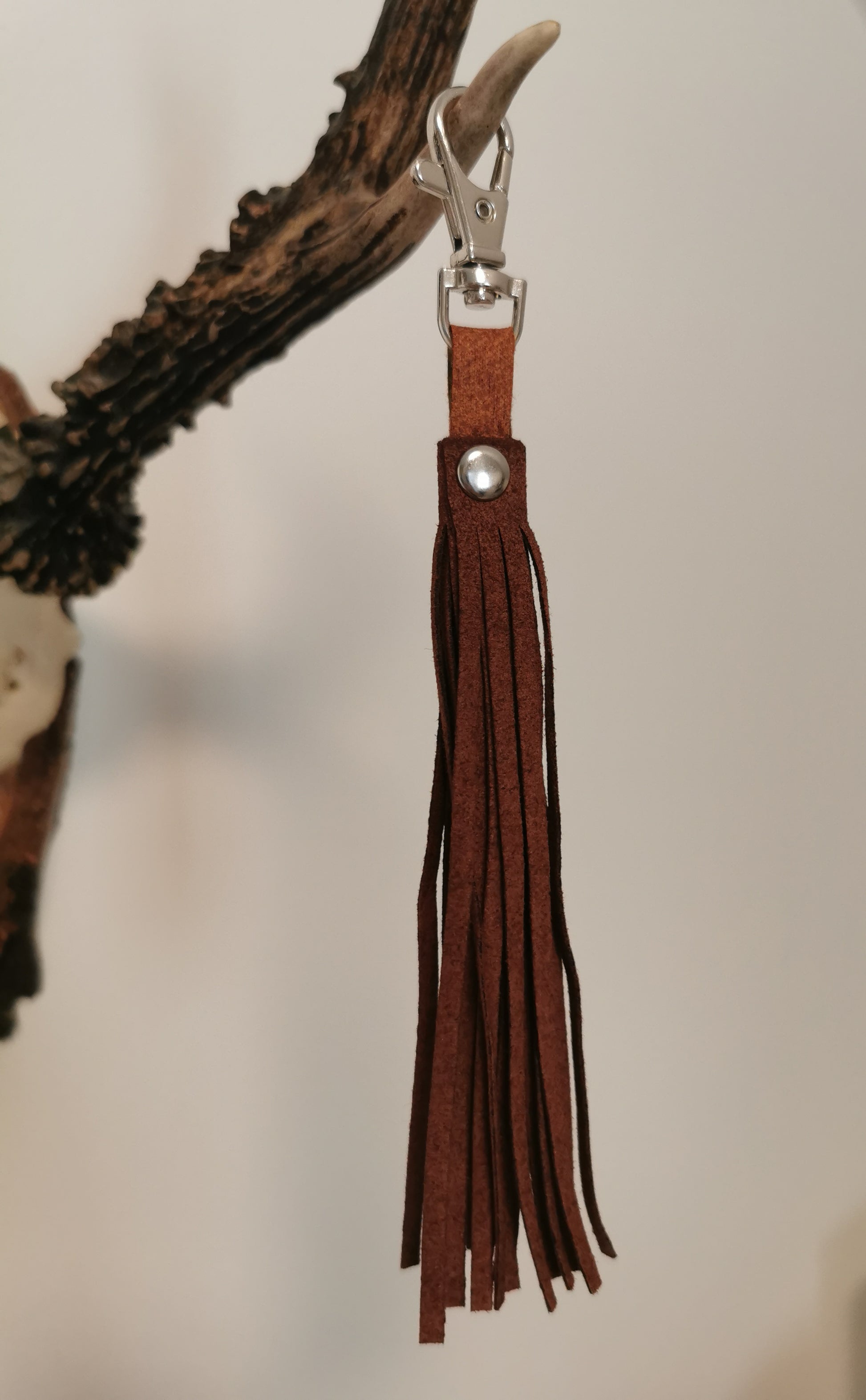 Die Lederquaste in Wildlederoptik lässt sich hervorragend als Schlüsselanhänger, tolles Accessoire für die Handtasche oder sogar für den Rückspiegel im Auto verwenden.
